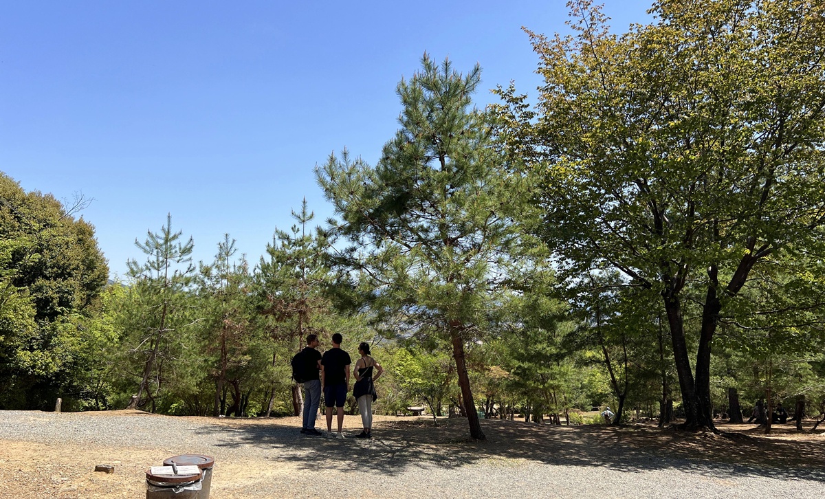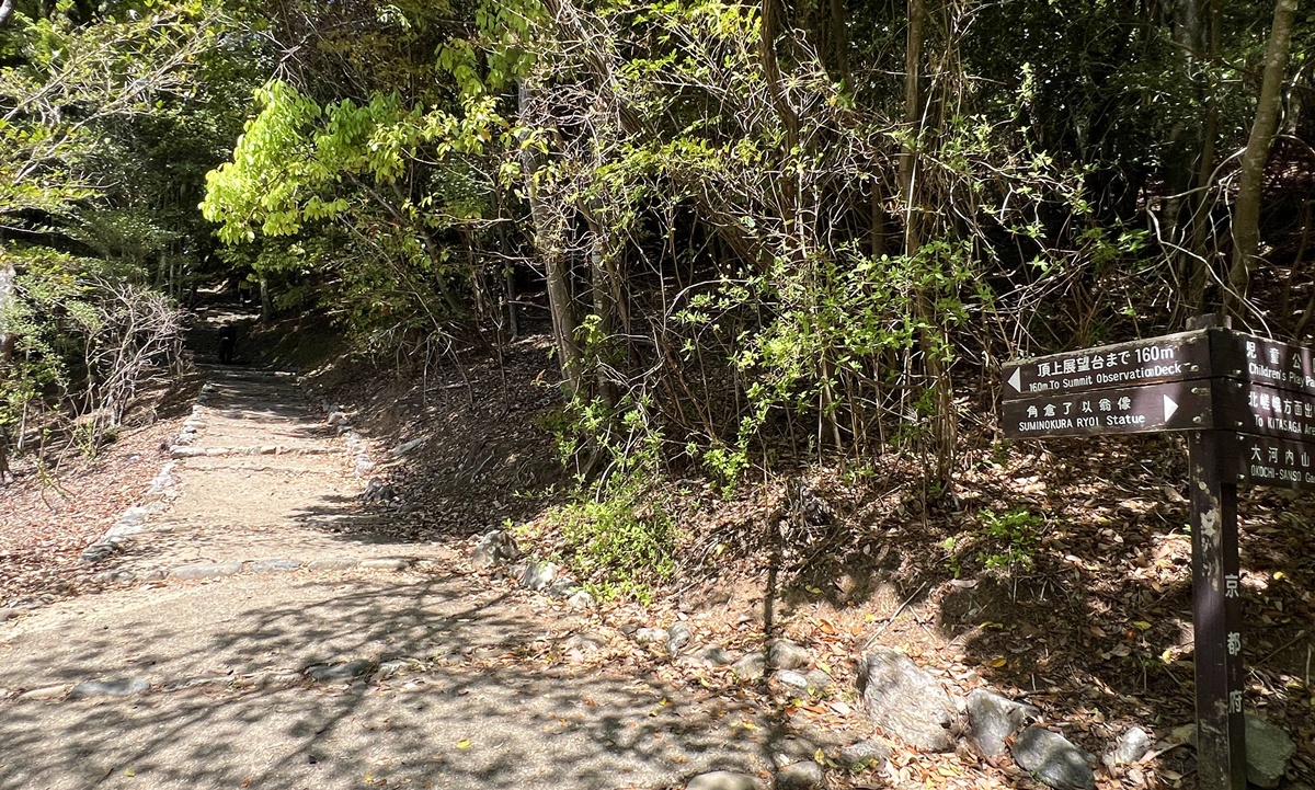 龜山地區的環山自然步道彷彿是一份嵐山保留給旅行者的禮物,沿途幾乎不見熙熙攘攘的觀光人潮,只有幾組散步或攝影的人,隨著步伐的移動,龜山地區的廣闊自然景觀逐漸展開,樹木與葉梢在風中相互摩擦,讓人得以置身於嵐山風景之中,遇見了嵐山好美的模樣。