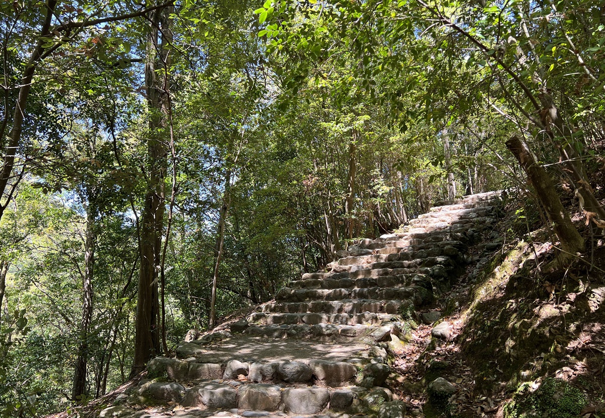 隨著步伐的移動,茂密的樹木逐漸包圍了龜山地區,形成了一片廣闊的綠色天地,這些樹群在微風中輕輕搖曳,葉梢相互擦碰,發出沙沙的聲響,彷彿在耳邊低語著嵐山的故事。
