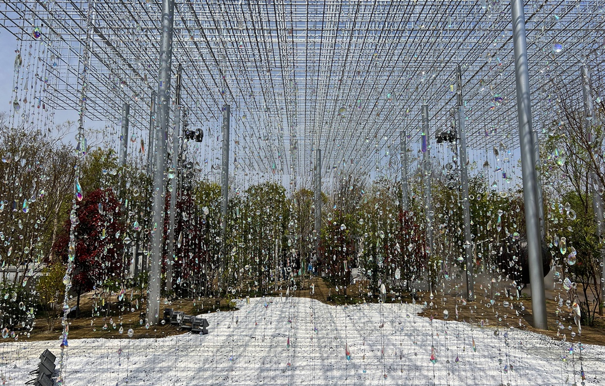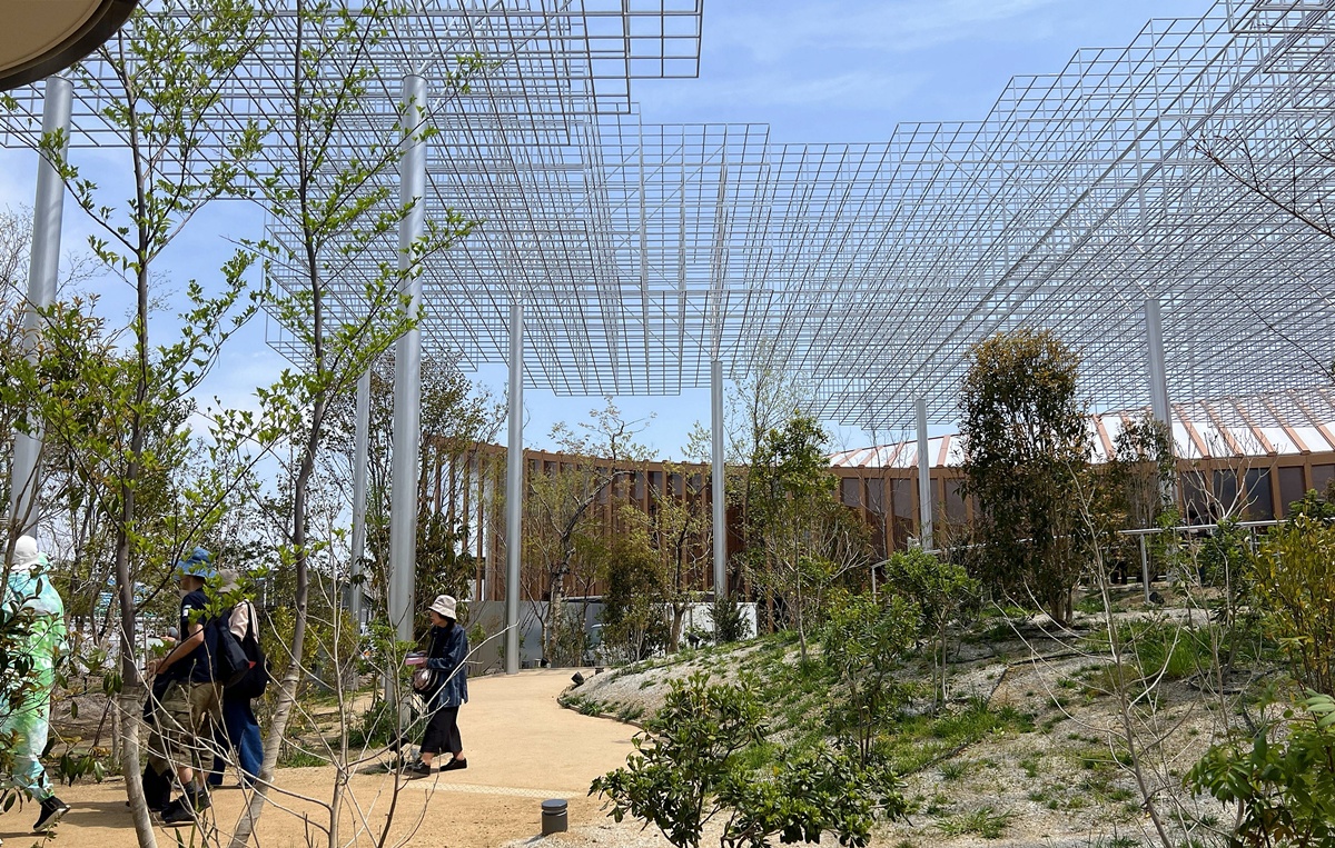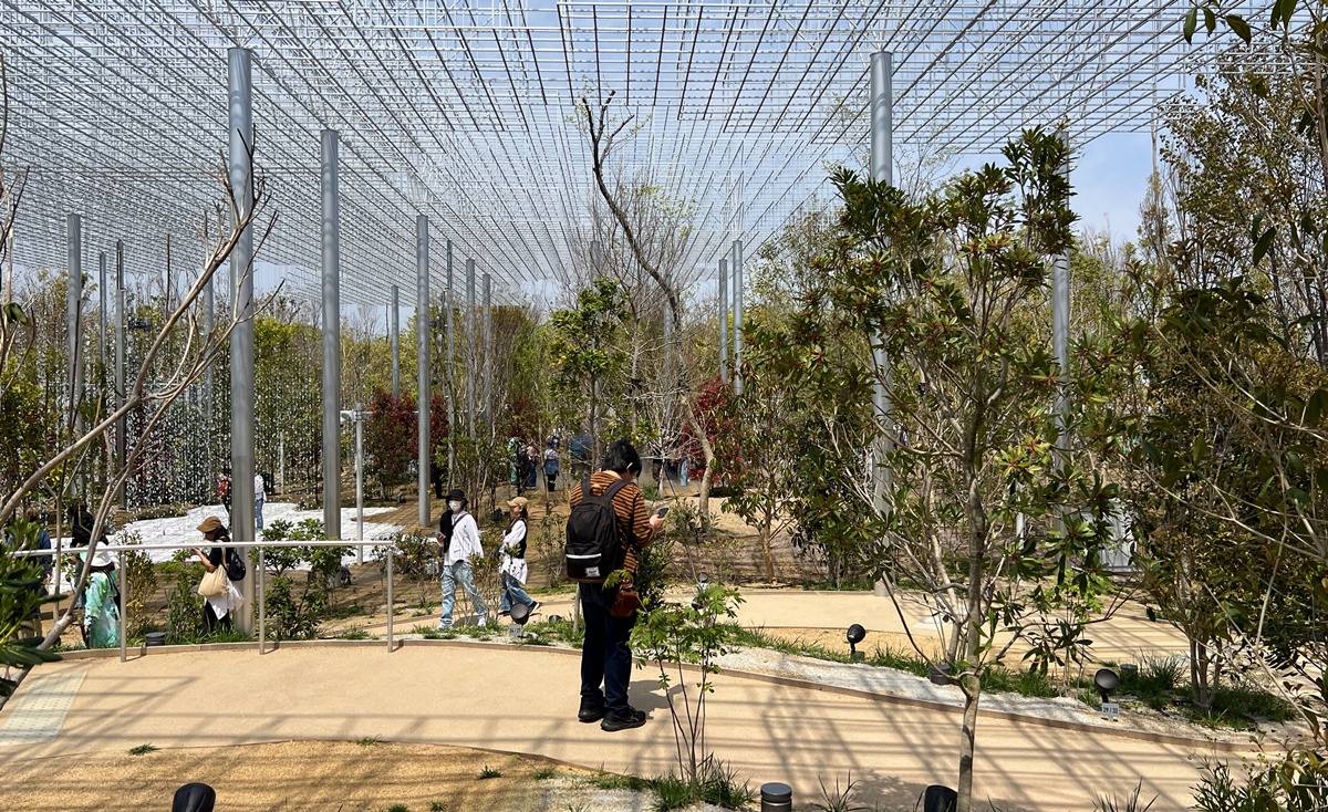位於大阪萬博園區正中央,與靜謐森林比鄰,漫步其中的你,不會看到互動橫幅大螢幕、炫目機械裝置、個人化頭套載具,沒有明確的入口與出口,也不再是單向的展示,他擁有的是森林、植物、陽光與水霧,為參觀者彼此提供一個不是靠語言,而是靠感覺來建立信任與理解,共享的、強大的、永續的動態環境,也是一場共感能力的演練場。