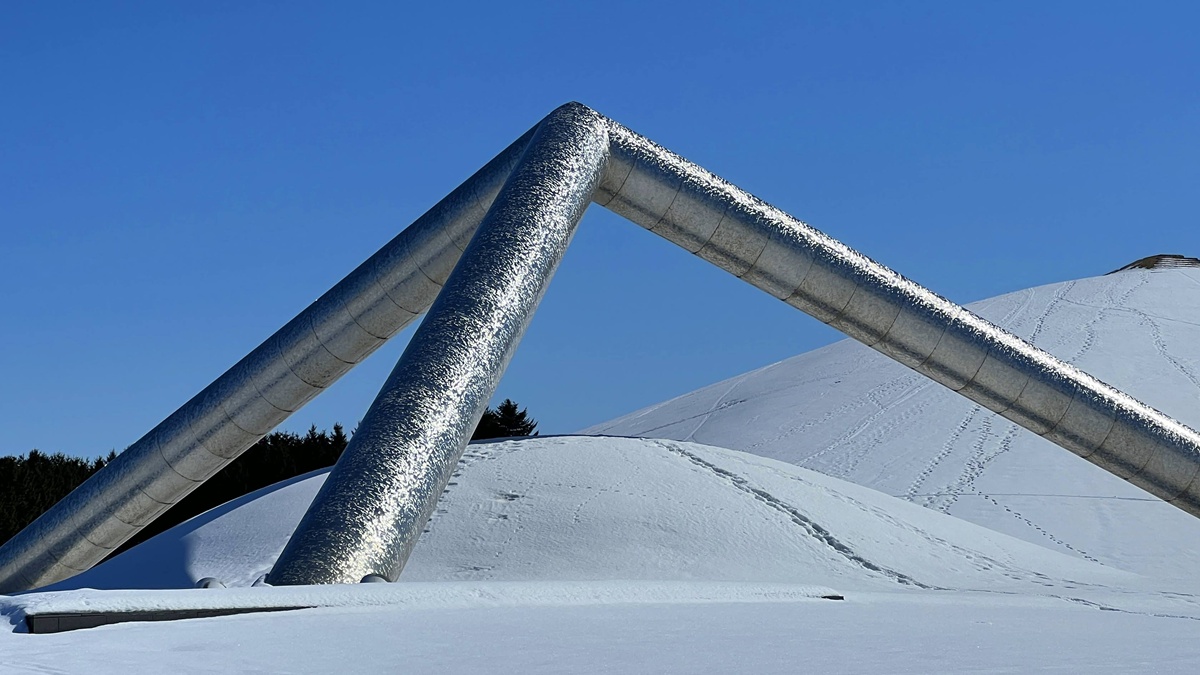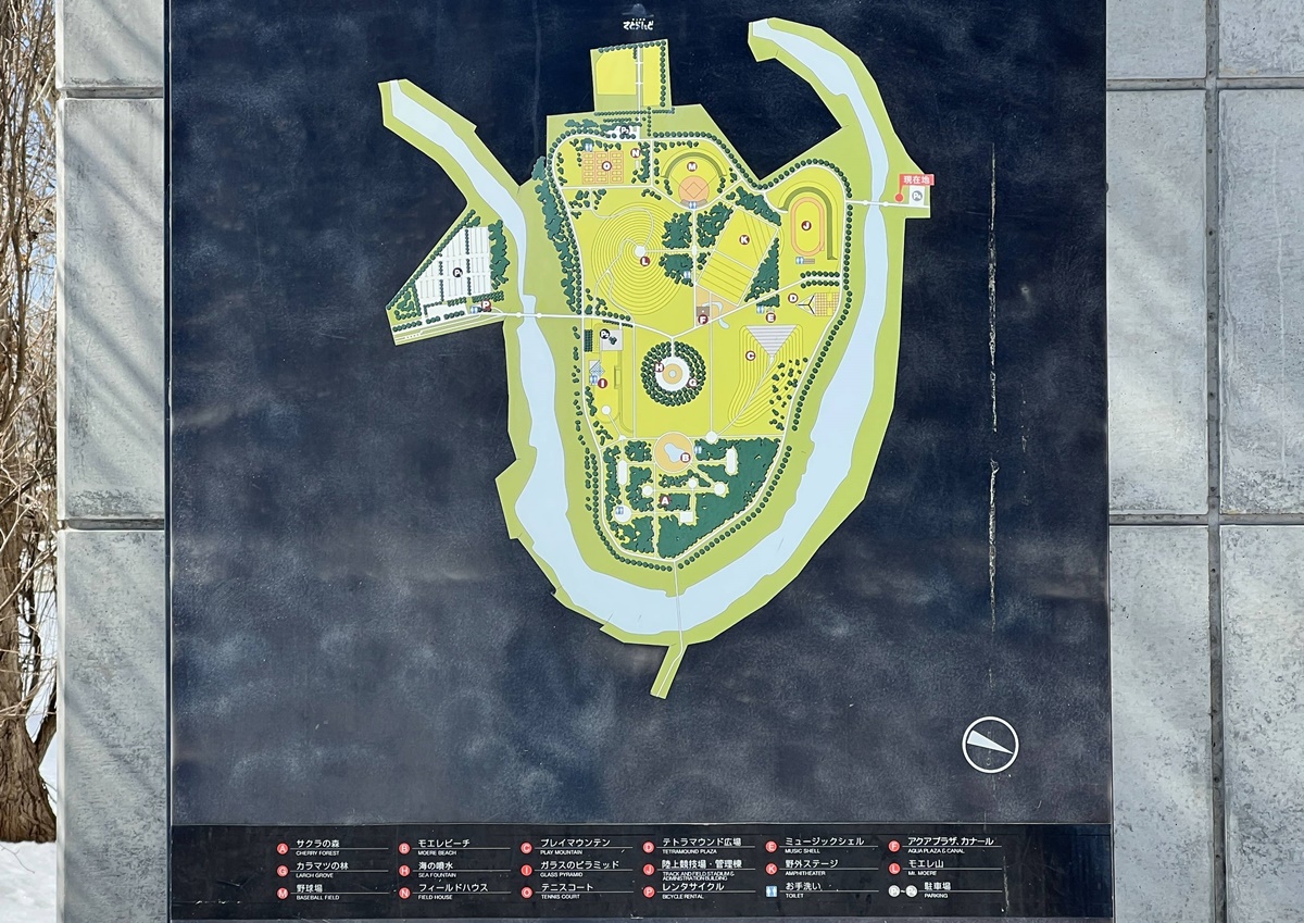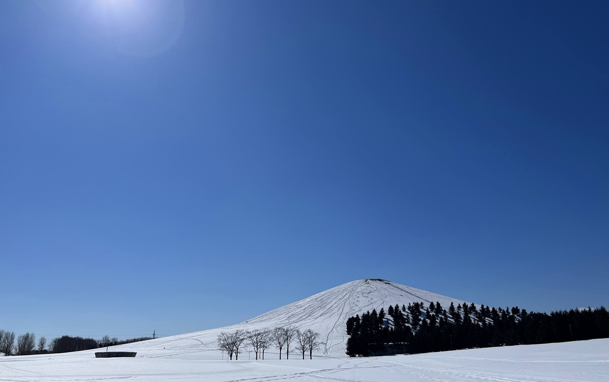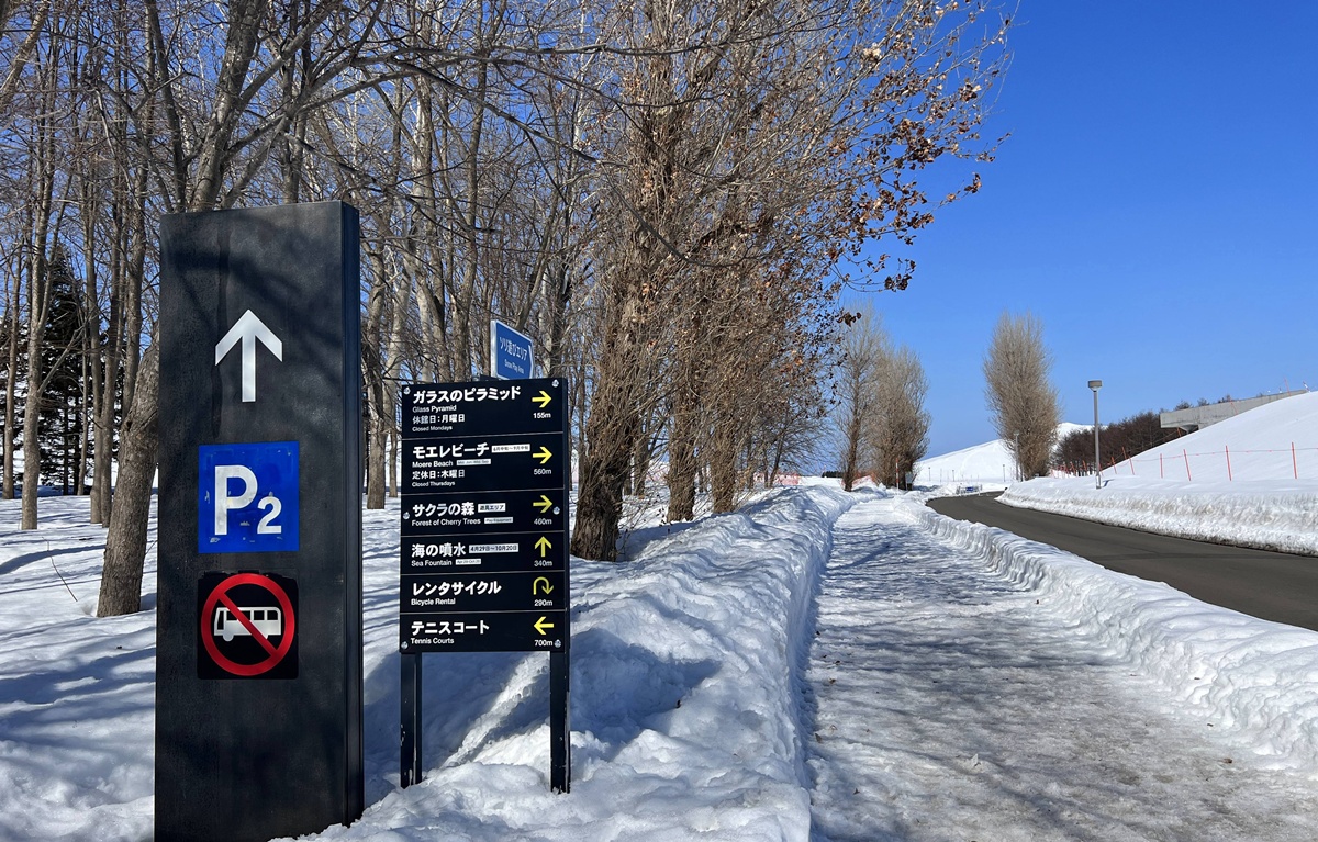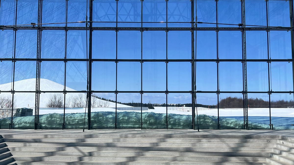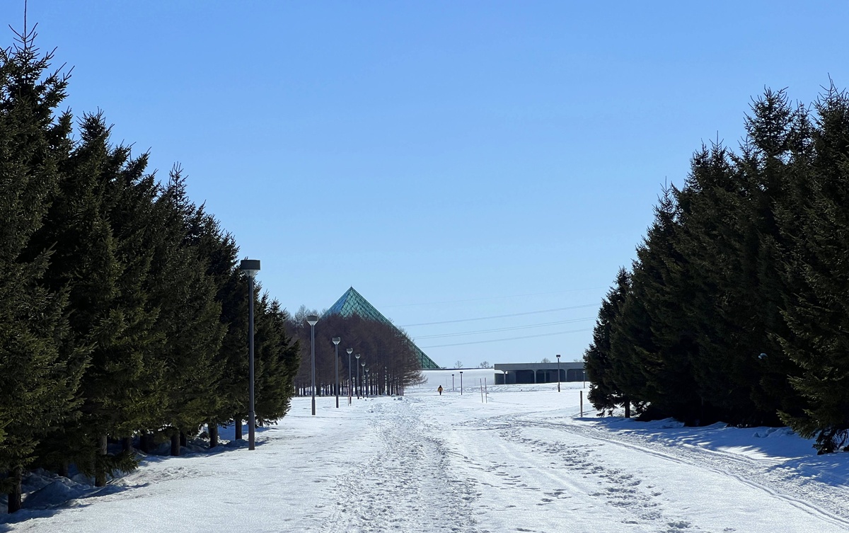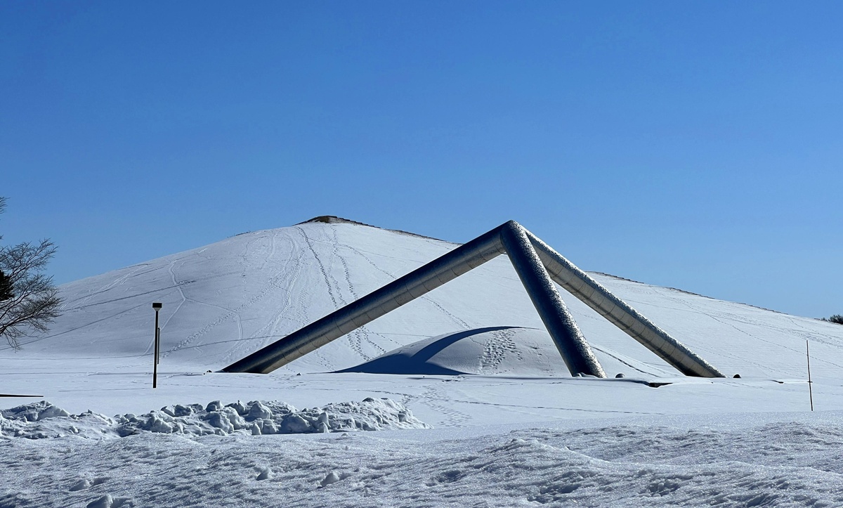 與其說是走進一座傳統意義上的公園,更像是步入了一個北國雪景的藝術裝置;公園內最主要的三大指標景觀作品,包括人工築成的石階山丘莫埃來山(Mt. Moere/モエレ山)、散發未來科技感的鋼骨三角錐與土台TETRAMOUND PLAZ(テトラマウンド廣場)、由玻璃結構打造的玻璃金字塔Glass Pyramid – HIDAMARI,特別是在雪景覆蓋下,被幾何設計細膩勾勒出的雪地畫布,顯得格外震撼。