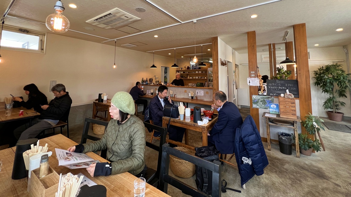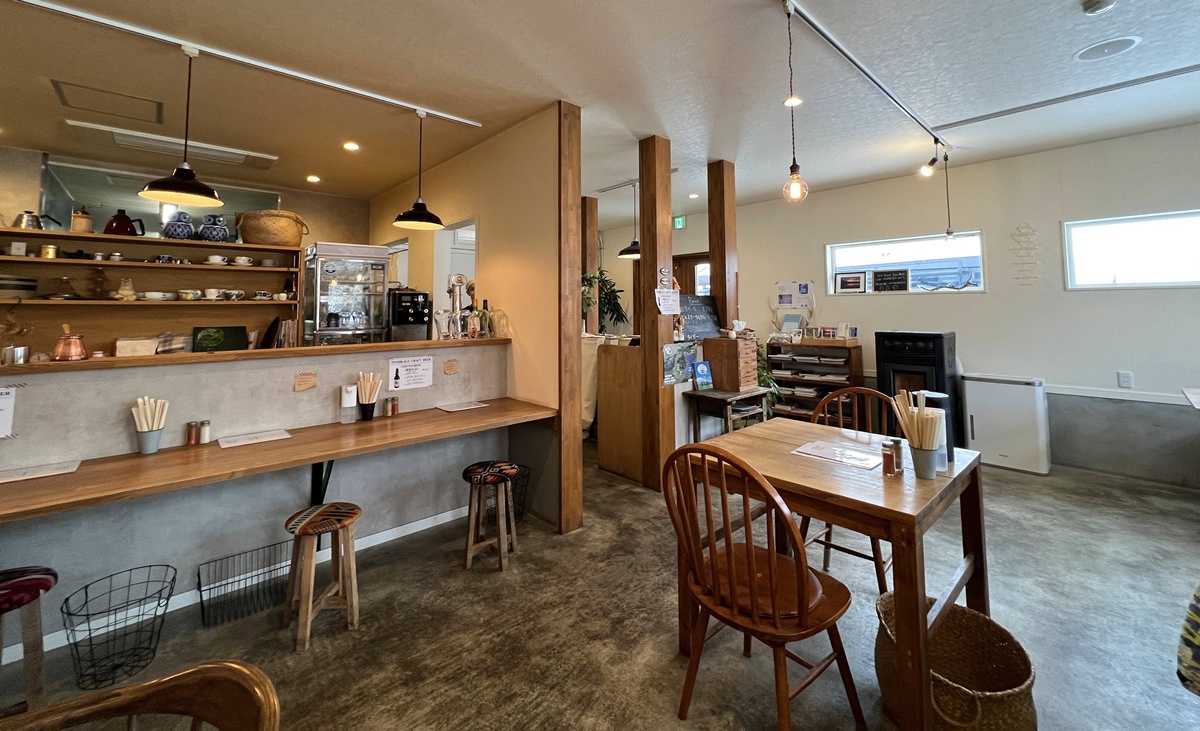 食堂と喫茶 poppotei 店內裝潢雅致,溫馨明亮,有種說不上來的復古與樸實,木桌椅間總飄著食物香氣與低語交談的聲音,像極了日本節目常見的鄉間食堂。