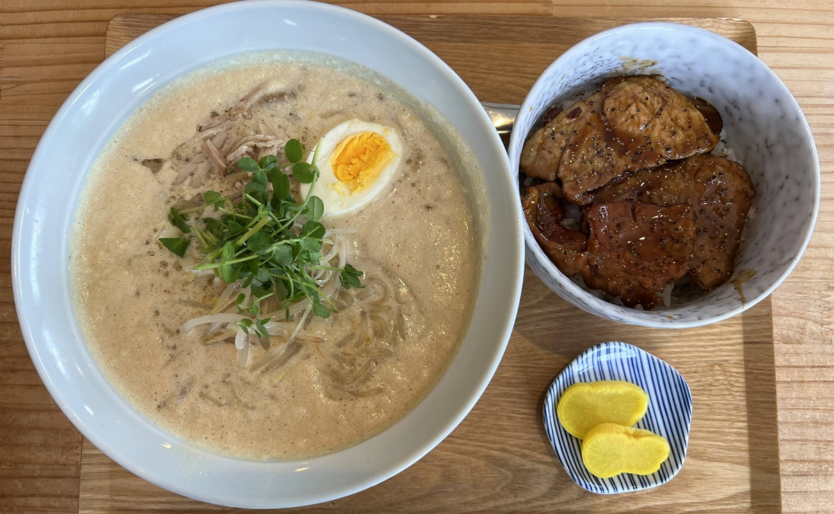 味噌拉麵高湯再入弟子屈產大豆磨制的豆汁,製成一口獨創的特色拉麵,淋上辣油,又是另一種香氣四溢的滋味。