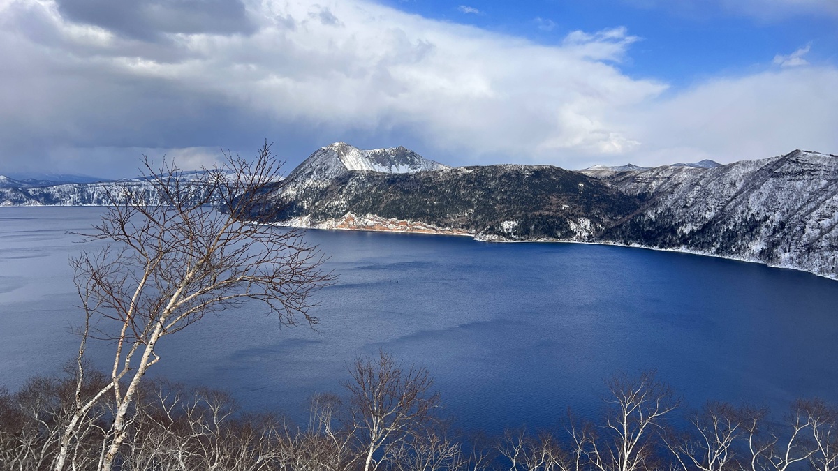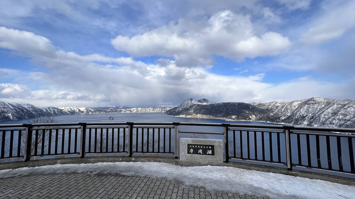 我們簡單交談一下,分享著剛剛拍完的摩周湖景照片,也發現彼此都在展望台休息區吃了霜淇淋。