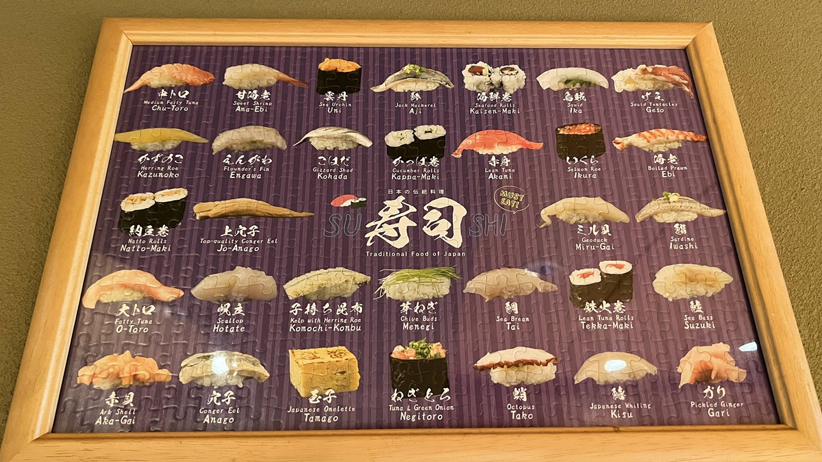 通常來說,會有這些:鮪魚 / 赤肉 / 大鰭礁魷魚 / 雪花鰈 / 竹莢魚 / 金眼鯛 / 煮長槍烏賊 / 甜蝦 / 玉子燒 / 海膽鮭魚卵 / 味噌大閘蟹 / 空心黃瓜卷