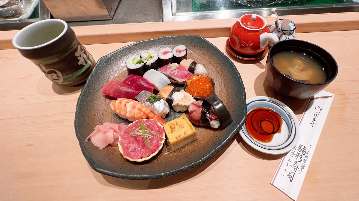 距離都營淺草線「藏前站」步行約5分鐘,船形屋壽司 駒形是一間低調的江戶前壽司店,不同於華麗的高級壽司店,這裡保留了江戶前壽司的樸實風格:魚料依季節採買,從築地或豐洲市場直送,米飯以赤醋調味,溫度維持在體溫附近,店內只設少量座席,重視板前互動、儀式感強、風格沉穩的用餐氛圍,非常適合想深入體會日本壽司文化的旅人。