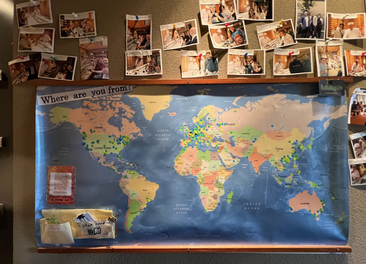 即使英語不流利,他依然努力解釋:魚料要如何「貼合」,醋飯怎麼在口中「輕輕散開」,我還問了師父究竟壽司哪一端可以沾醬油,或者是不是要用手拿壽司比較有禮貌,他都一一跟我分析。